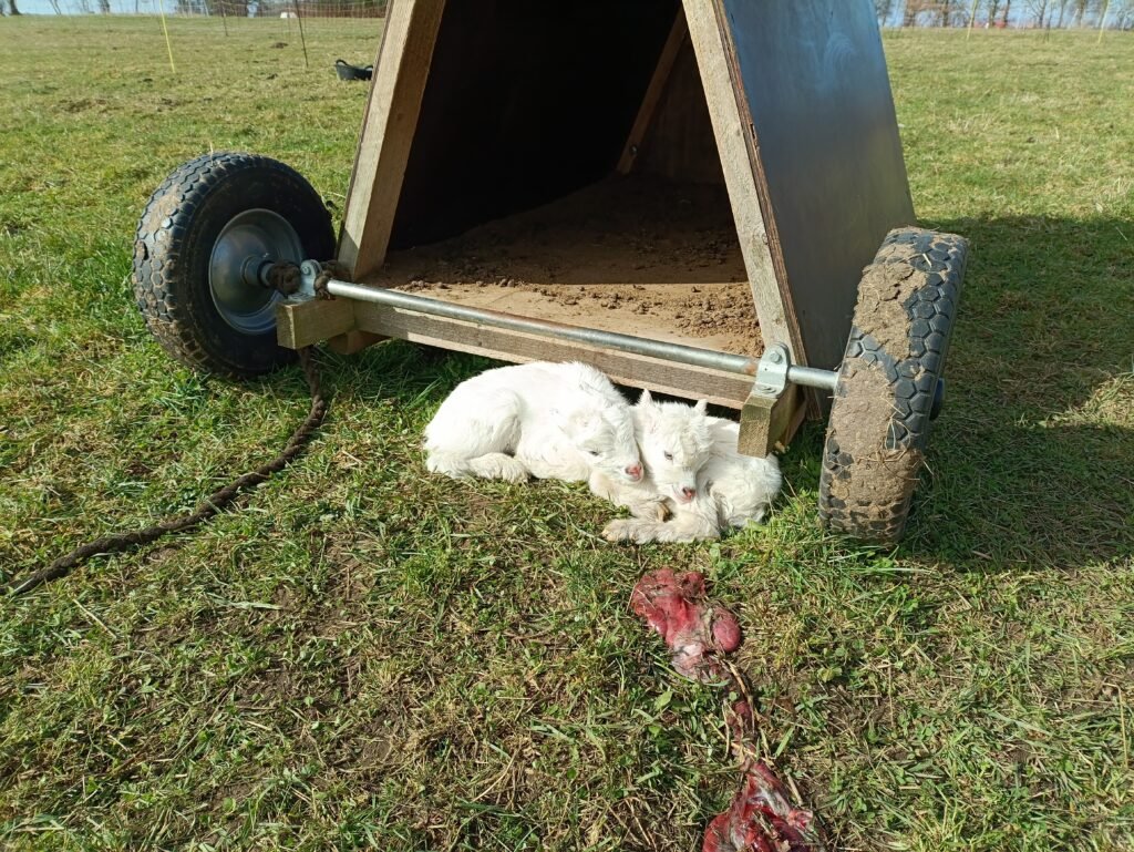 Das Mutterschaf hatte auch das lebende Lamm zurückgelassen. Anscheinend hatte sie es bereits aufgegeben. Das Tier war so schwach, dass es kaum seinen Kopf bewegen konnte. Wir haben es der Mutter vor die Nase gehalten und sie hat es erkannt. Anschließend haben wir eine kleine Mutter-Kind-Box mit Hurden aufgebaut. Die Mutter ist dem Kleinen gefolgt, dass wir dort hinein getragen haben.